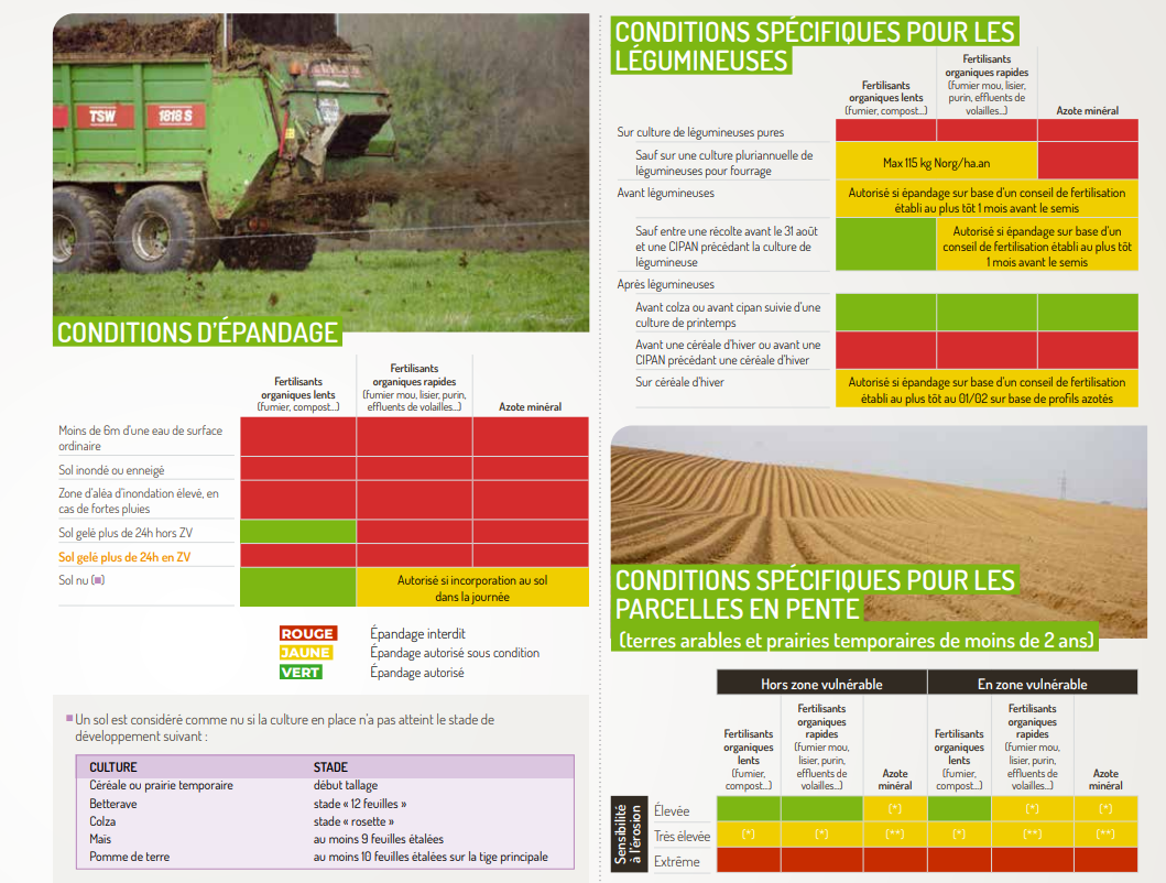 - En zone vulnérable, il est totalement interdit totalement d’épandre sur sol gelé et hors zone vulnérable, seul l’épandage de fertilisants organiques lents est permis sur sol gelé.